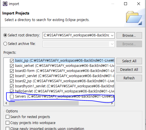 - Project Import → Server폴더는 제외