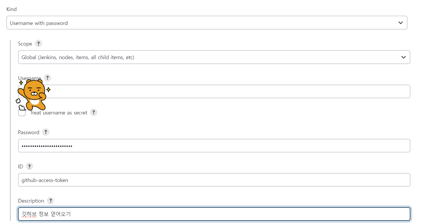 2. Username with password : Pipeline 스크립트에서 Repository를 Clone 받을 때사용