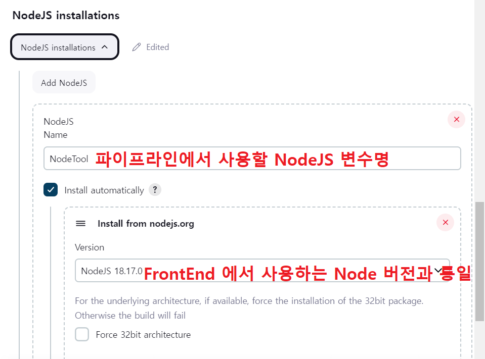 - Jenkins관리 - Tools에 Node 설정