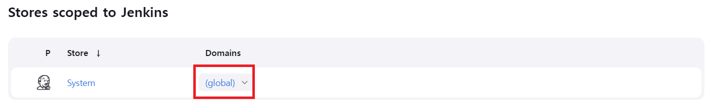 Stored scoped to jenkins의 (global)을 클릭