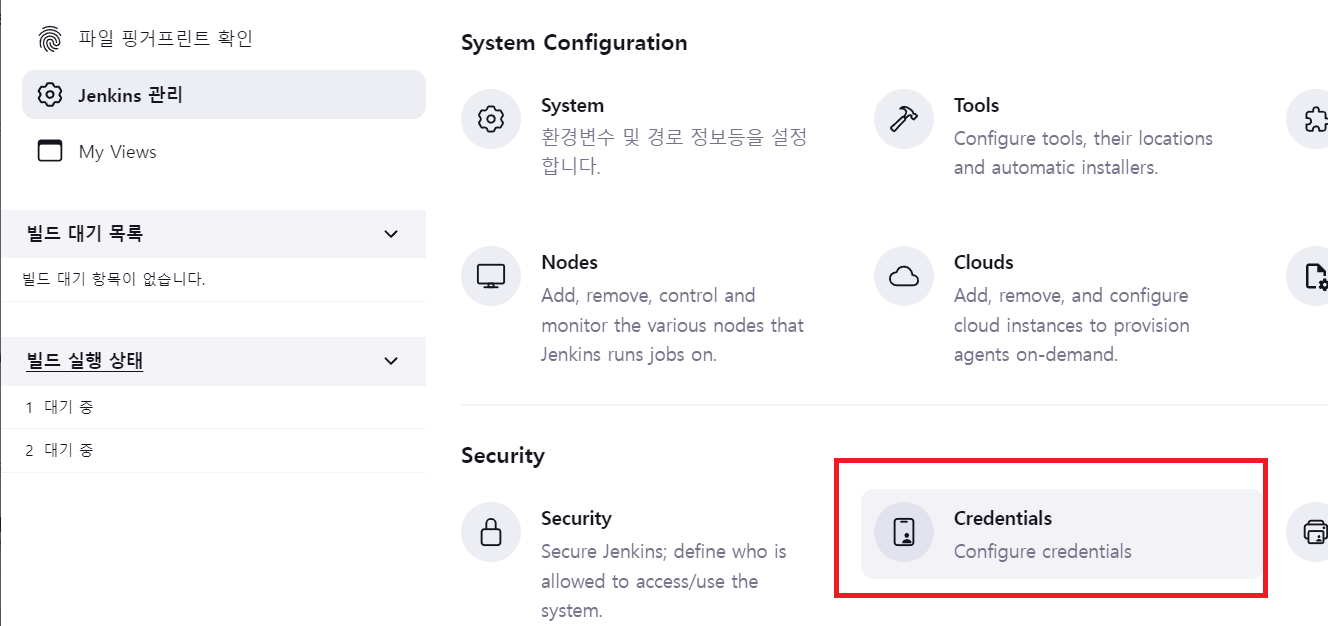 Jenkins 관리 - System Configration - Credentials 선택